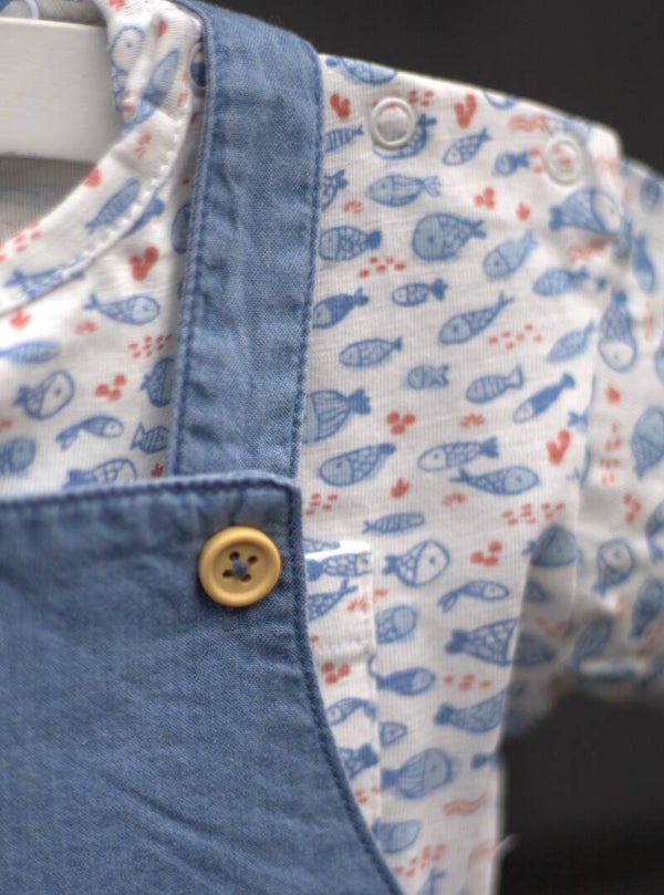 Van dit vrolijke setje krijg je spontaan zinin het mooie weer. Je kunt het shirtje en broekje ook los dragen.